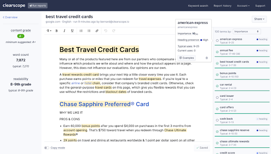 advantage of keyword chances. In this situation, Clearscope is useful.
